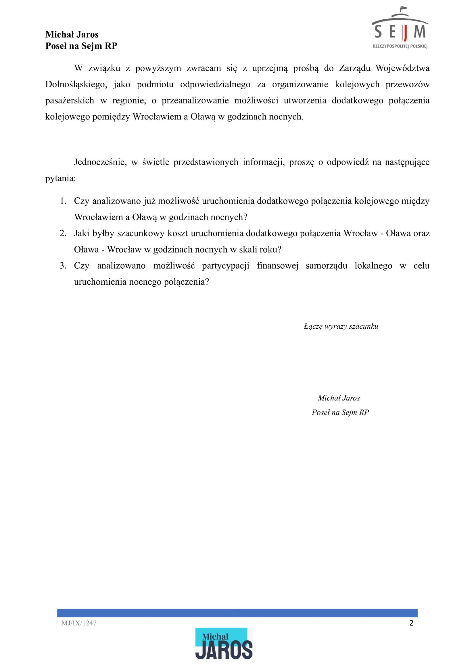 Interpelacja poselska w sprawie podwyżek cen biletów kolejowych